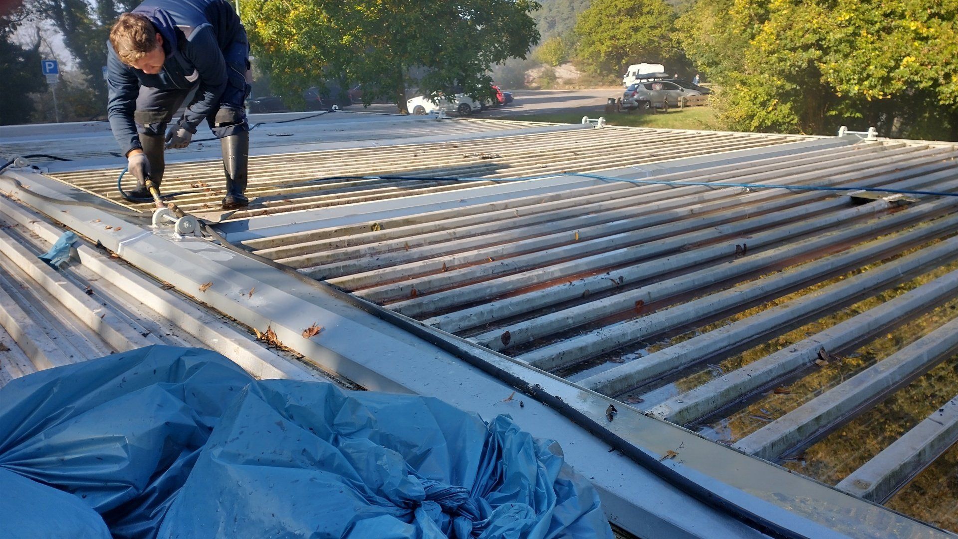 Container - Laub vom Dach entfernen