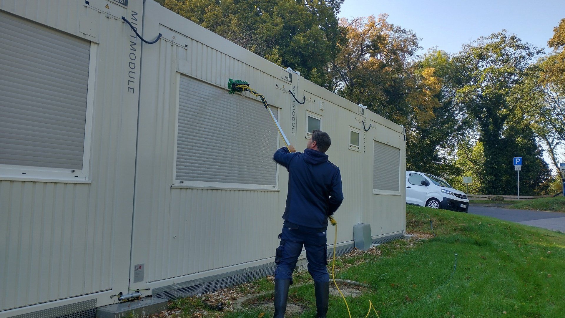 Reinigung von Bürocontainern